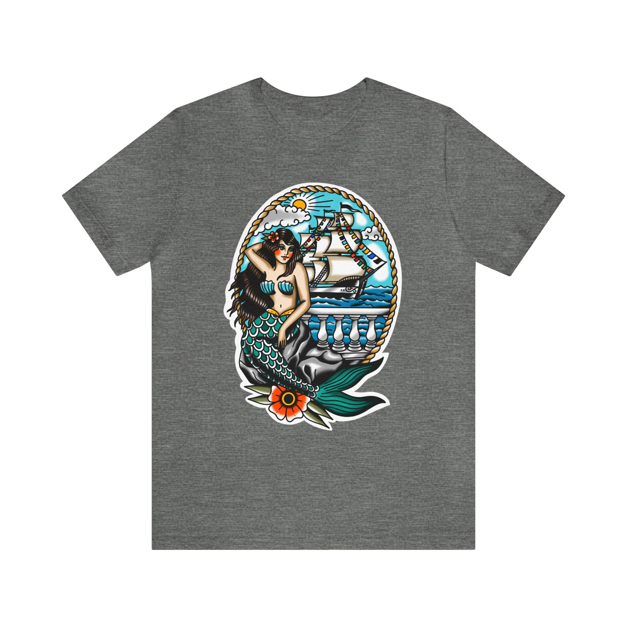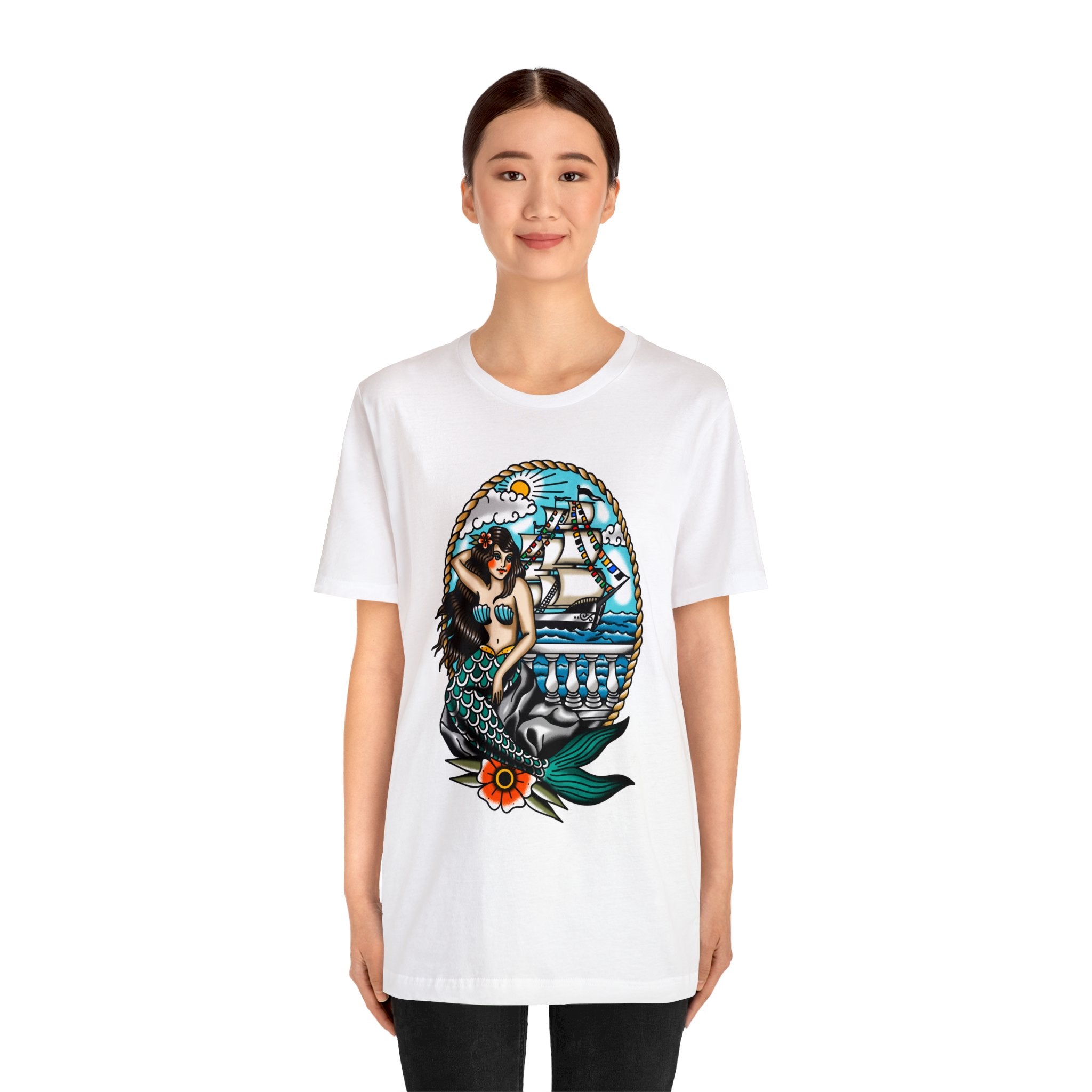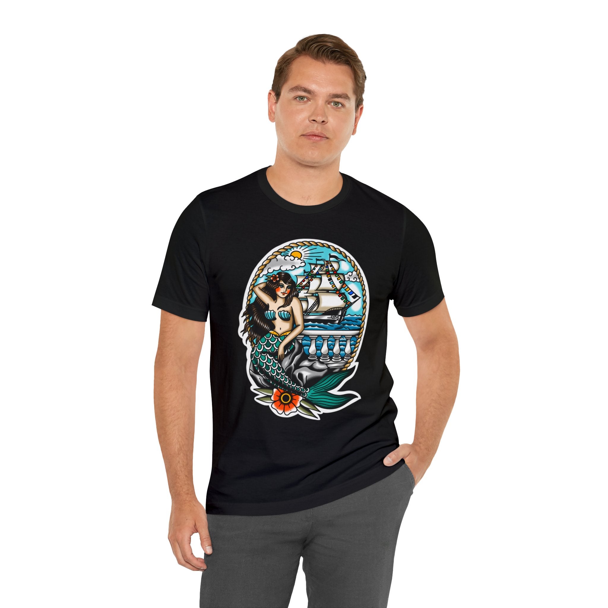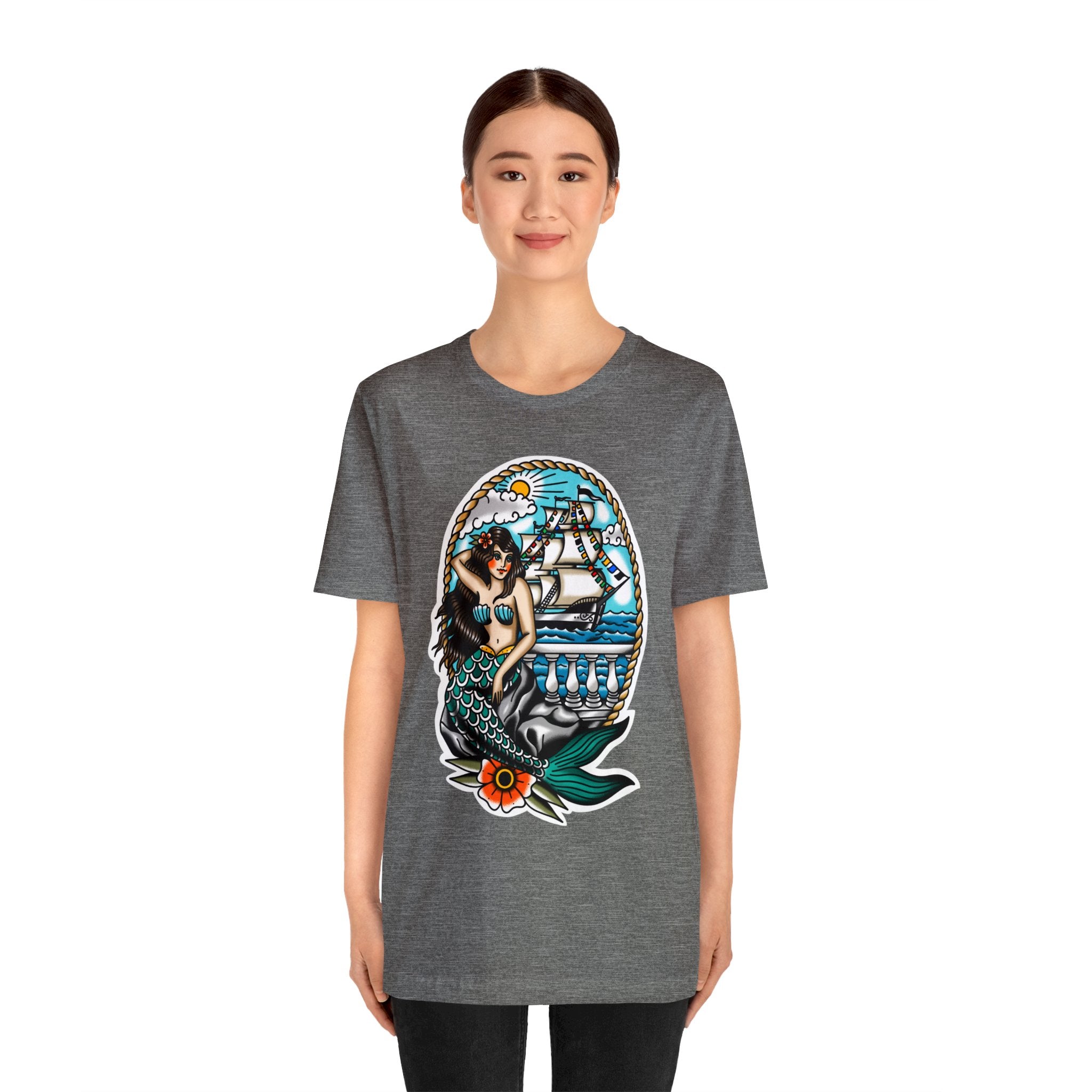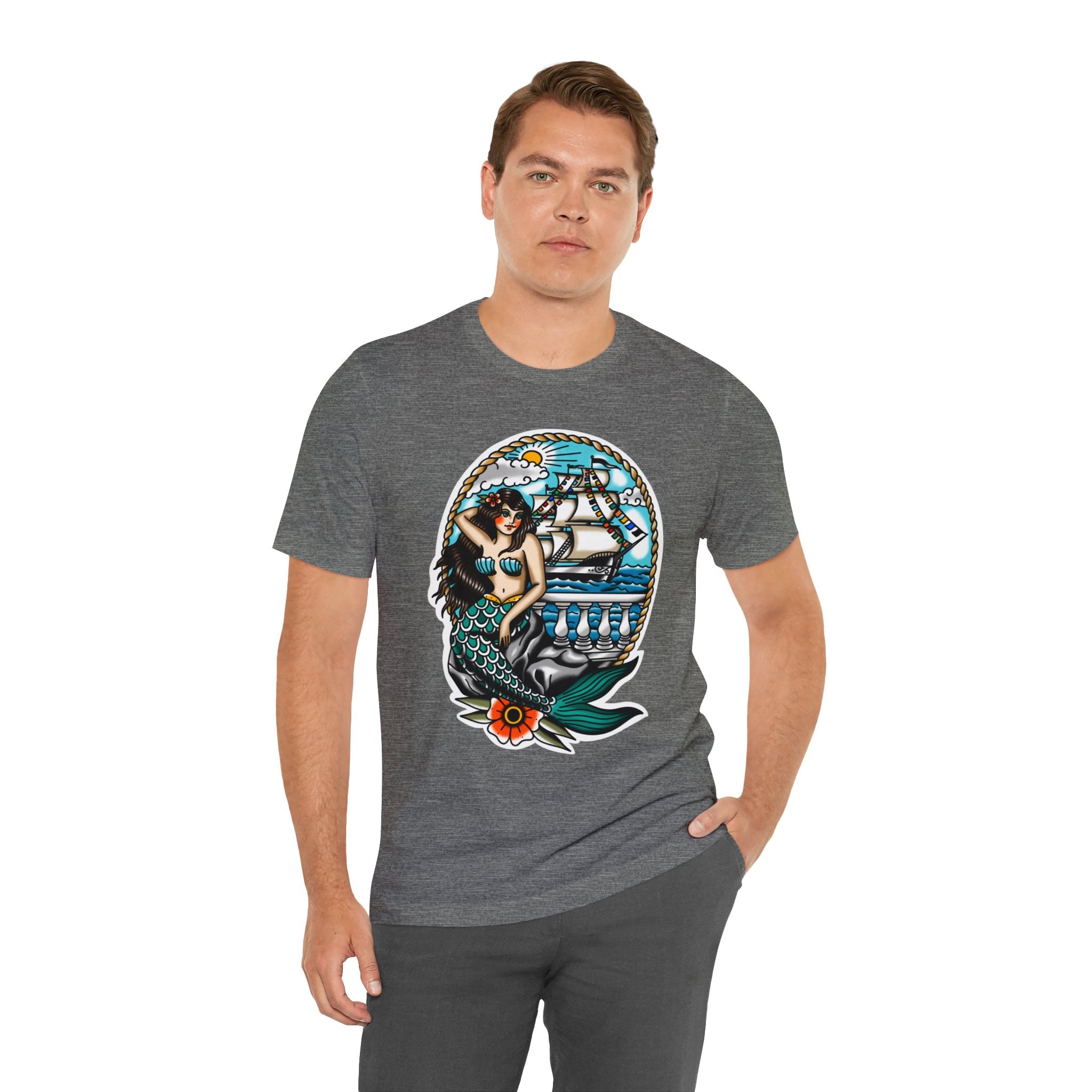 Ahoy, Gasparilla pirates! Get ready to make a statement at this year's Gasparilla celebration with our unique mermaid-themed t-shirt. This one-of-a-kind top is perfect for all genders and sizes, featuring a playful, mermaid-inspired design that will get you noticed on the streets of Tampa Bay. With its ultra-soft fabric and vibrant colors, this lightweight piece of clothing is just what you need to stay cozy during your adventurous pirate escapades. So grab your parrot, swagger onto the deck with your cutlass in hand, and commandeer your own style with this festive shirt!